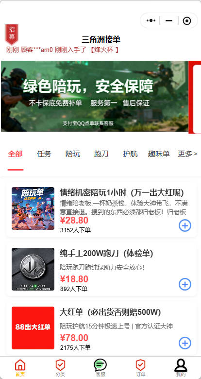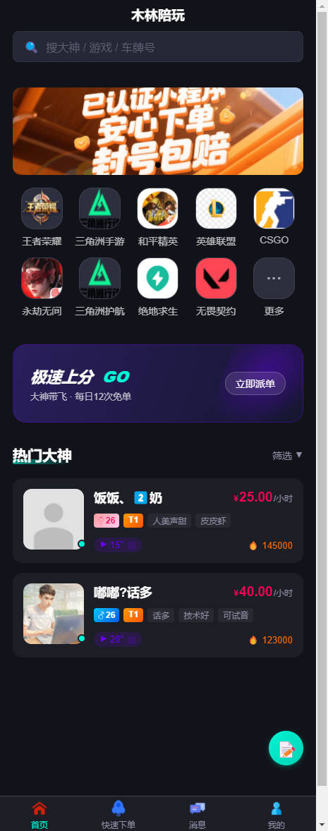 三角洲行动陪玩系统,带陪玩,带聊天,带订单!