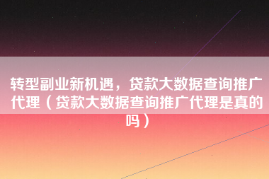 贷款大数据查询推广代理成为转型副业的新选择,但需谨慎考察其真实性,此业务涉及贷款数据推广,需核实其合法性和可靠性,以确保投资安全。