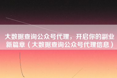 随着互联网的快速发展,大数据行业逐渐成为热门领域,而公众号作为当下最受欢迎的社交媒体平台之一,其背后蕴藏着巨大的商业价值,如果你正在寻找一份副业,那么大数据查询公众号代理或许是一个不错的选择,下面,我们就来详细了解一下如何成为大数据查询公众号代理,以及如何推广你的业务。